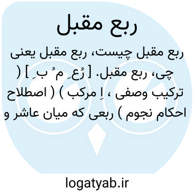 ربع مقبل. [ رُع ِ م ُ ب ِ ] ( ترکیب وصفی، اِ مرکب ) ( اصطلاح احکام نجوم ) ربعی که میان عاشر و طالع از فلک واقع است و نظیرآن میان رابع و سابع است. ( یادداشت مرحوم دهخدا ).