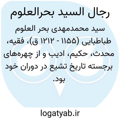 [ویکی فقه] بحر العلوم طباطبایی، سید محمد مهدی (۱۱۵۵ - ۱۲۱۲ ق) فقیه، محدث، حکیم، ادیب و سردودمان آل بحرالعلوم و رئیس حوزه علمیه نجف و مرجع شیعیان در روزگار خود بود، وی صاحب کتاب رجالی با عنوان، رجال السید بحر العلوم، می باشد.