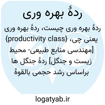 {productivity class} [مهندسی منابع طبیعی- محیط زیست و جنگل] ردۀ جنگل ها براساس رشد حجمی بالقوۀ سالانه در واحد سطح و در زمان اوج رویش متوسط سالانه در توده های طبیعی متراکم