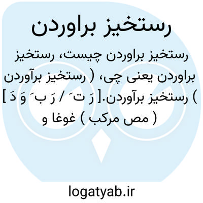 ( رستخیز برآوردن ) رستخیز برآوردن.[ رَ ت َ / رَ ب َ وَ دَ ] ( مص مرکب ) غوغا و فریاد و شور پدید آوردن. فریاد و داد بلند کردن: