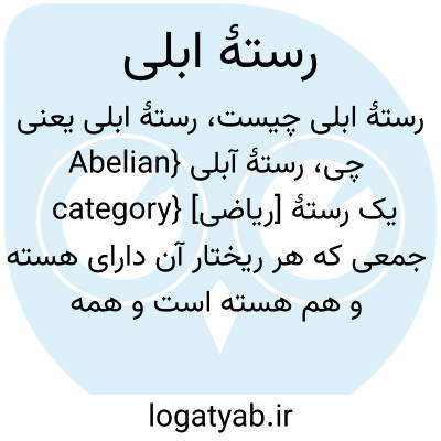 {Abelian category} [ریاضی] یک رستۀ جمعی که هر ریختار آن دارای هسته و هم هسته است و همه ریختارهای Coim f → Im f مربوط به آن یکریختی هستند