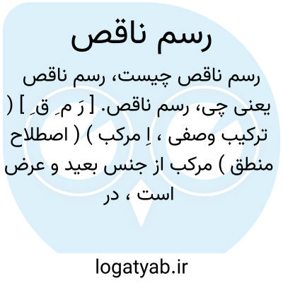 رسم ناقص. [ رَ م ِ ق ِ ] ( ترکیب وصفی، اِ مرکب ) ( اصطلاح منطق ) مرکب از جنس بعید و عرض است، در مقابل رسم تام. ( از فرهنگ لغات و اصطلاحات فلسفی تألیف سجادی ). پس اگر افادت تمییز کلی کند [ رسم ] تام بود والاّ ناقص. ( اساس الاقتباس ص 341 ). آن است که مرکب شود از جنس بعید و عرض خاص و یا از عرض به تنهایی، مانند تعریف انسان به ضاحک یا به جسم ضاحک، یا به عرضهایی که من حیث المجموع مختص به حقیقت واحد باشند مانند آنکه در تعریف انسان بگوییم راه رونده یا دوپا و دارای ناخنهای عریض و مستقیم القامة، و خندان به طبیعت. ( از کشاف اصطلاحات الفنون ) ( از تعریفات جرجانی ). و رجوع به رسم و رسم تام و جنس و عَرَض شود.