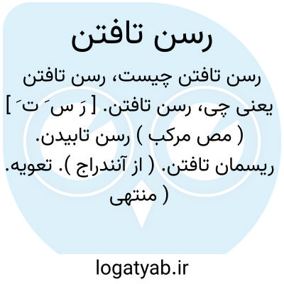 پدر چرخ برایش چه نکو تافت رسن.ظهوری ترشیزی ( از آنندراج ).اترار؛ سخت تافتن رسن را. عَبْل؛ رسن را تافتن. ( منتهی الارب ). مَسْد؛ رسن نیک بتافتن. ( دهار ).