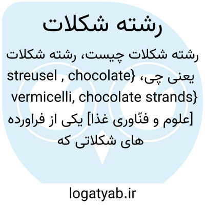 {streusel , chocolate vermicelli, chocolate strands} [علوم و فنّاوری غذا] یکی از فراورده های شکلاتی که با عبور دادن خمیر شکلات از صفحات مشبک به دست می آید