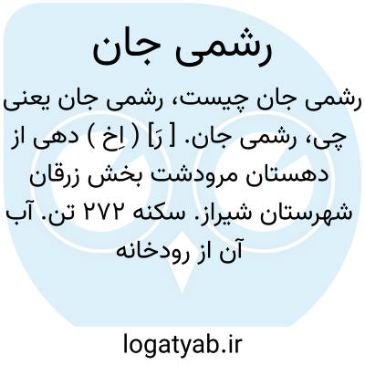 رشمی جان. [ رَ] ( اِخ ) دهی از دهستان مرودشت بخش زرقان شهرستان شیراز. سکنه 272 تن. آب آن از رودخانه سیوند. محصولات عمده غلات و چغندر. ( از فرهنگ جغرافیایی ایران ج 7 ).