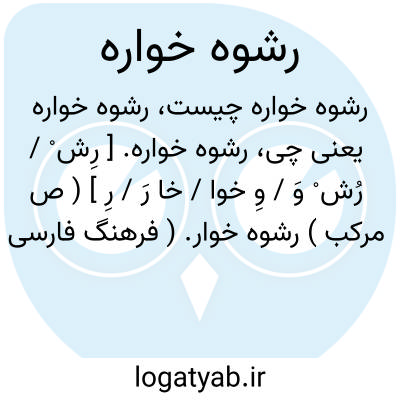 رشوه خواره. [ رِش ْ / رُش ْ وَ / وِ خوا / خا رَ / رِ ] ( ص مرکب ) رشوه خوار. ( فرهنگ فارسی معین ). و رجوع به رشوه خوار شود.