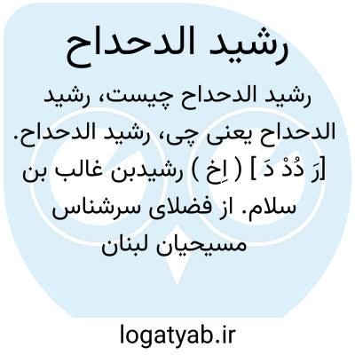 رشید الدحداح. [رَ دُدْ دَ ] ( اِخ ) رشیدبن غالب بن سلام. از فضلای سرشناس مسیحیان لبنان است. تولد رشید در عرامون از دیه های کسروان لبنان بسال 1228 هَ. ق. 1813م. و مرگ وی در دهی در کنار دریای مانش در شمال فرانسه به سال 1100 هَ. ق. 1889م. بود. او راست کتاب: «طرب المسامع»در ادبیات، و «قمطرة طوامیر» مجموعه مقالات، «السیار المشرق فی بوار المشرق » که تاریخ بزرگی است. ( از اعلام زرکلی چ جدید ج 3 ). و رجوع به رشیدبن غالب شود.