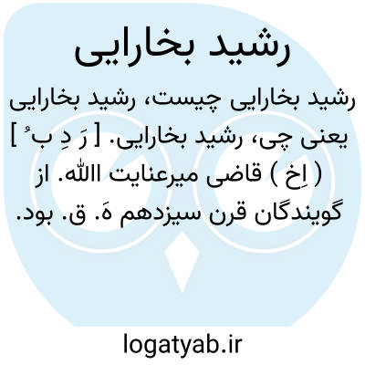 رشید بخارایی. [ رَ دِ ب ُ ] ( اِخ ) قاضی میرعنایت اﷲ. از گویندگان قرن سیزدهم هَ. ق. بود. رجوع به فرهنگ سخنوران و تذکره قاری صص 123 - 126 شود.