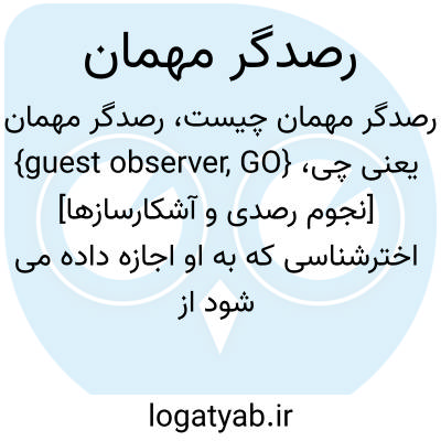 {guest observer, GO} [نجوم رصدی و آشکارسازها] اخترشناسی که به او اجازه داده می شود از تلسکوپ و ابزارهای موجود در رصدخانه برای تحقیق استفاده کند، بی آنکه عضو گروه مربوط باشد