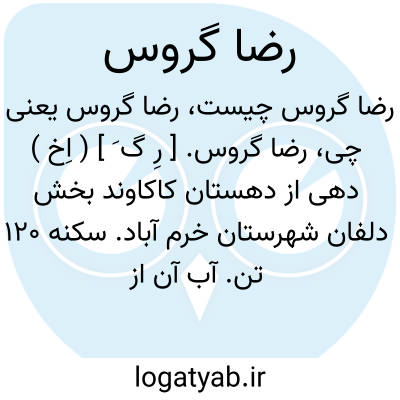 رضا گروس. [ رِ گ َ ] ( اِخ ) دهی از دهستان کاکاوند بخش دلفان شهرستان خرم آباد. سکنه 120 تن. آب آن از چشمه و رود گاماسیاب. محصول آنجا غلات و لبنیات. ساکنان از طایفه غیب غلامند و در زمستان به قشلاق می روند. ( از فرهنگ جغرافیایی ایران ج 6 ).
