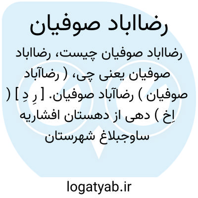 ( رضاآباد صوفیان ) رضاآباد صوفیان. [ رِ دِ ] ( اِخ ) دهی از دهستان افشاریه ساوجبلاغ شهرستان کرج. آب آن از قنات و رود کردان. سکنه 161تن. محصول آنجا غلات و بنشن و صیفی و چغندرقند و لبنیات و انواع میوه. ( از فرهنگ جغرافیایی ایران ج 1 ).