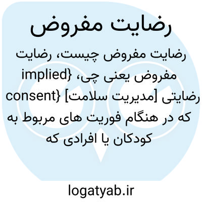 {implied consent} [مدیریت سلامت] رضایتی که در هنگام فوریت های مربوط به کودکان یا افرادی که هوشیاری کامل ندارند، انتظار می رود که پس از مداخلۀ درمانی اخذ شود