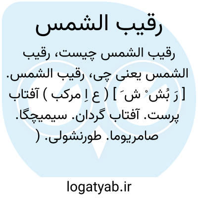 رقیب الشمس. [ رَ بُش ْ ش َ ] ( ع اِ مرکب ) آفتاب پرست. آفتاب گردان. سیمیچگا. صامریوما. طورنشولی. ( یادداشت مؤلف ). رجوع به مترادفات کلمه شود. || افریبون. ( یادداشت مؤلف ).
