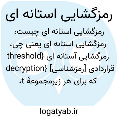 رمزگشایی آستانه ای {threshold decryption} [رمزشناسی] قراردادی که برای هر زیرمجموعۀ t، عضوی از یک مجموعۀ nعضوی از هستارها یا کارسازها، امکان رمزگشایی یک متن رمزشده را فراهم می سازد، درحالی که مانع از رمزگشایی پیام مزبور توسط هر زیرمجموعه با کمتر از t عضو می شود