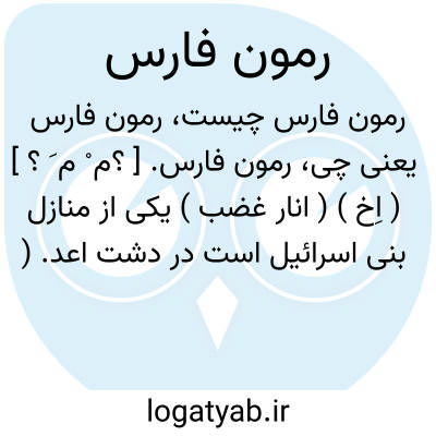 رمون فارس. [ ؟م ْ م َ ؟ ] ( اِخ ) ( انار غضب ) یکی از منازل بنی اسرائیل است در دشت اعد. ( قاموس کتاب مقدس ).