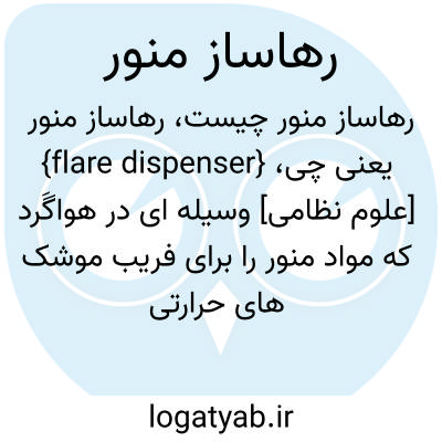 {flare dispenser} [علوم نظامی] وسیله ای در هواگَرد که مواد منور را برای فریب موشک های حرارتی دشمن به بیرون پرتاب می کند