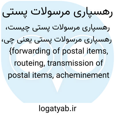 {forwarding of postal items, routeing, transmission of postal items, acheminement des envois postaux (fr. )} [مهندسی مخابرات - پست] ارسال یا حمل مرسولات پُستی از محلی به محل دیگر از راه ها و مسیرهای تعیین شده