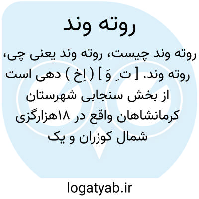 روته وند. [ ت ِ وَ ] ( اِخ ) دهی است از بخش سنجابی شهرستان کرمانشاهان واقع در 18هزارگزی شمال کوزران و یک هزارگزی راه فرعی سنجابی به جوانرود. دشت و سردسیر است.سکنه آن 80 تن است که مذهب تسنن دارند و به لهجه کردی تکلم می کنند. آب آن از چاه و قنات تأمین میشود. محصولش غلات، حبوب، صیفی و لبنیات، و شغل اهالی زراعت و گله داری است و راه مالرو دارد و در تابستان اتومبیل میتوان برد. ( از فرهنگ جغرافیایی ایران ج 5 ).