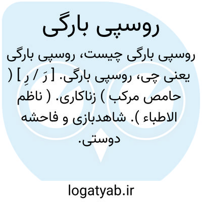 روسپی بارگی. [ رَ / رِ ] ( حامص مرکب ) زناکاری. ( ناظم الاطباء ). شاهدبازی و فاحشه دوستی. ( یادداشت مؤلف ). و رجوع به روسپی شود. || قحبگی و فاحشه گری.