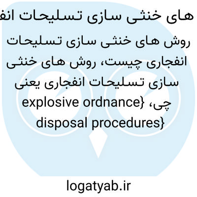 {explosive ordnance disposal procedures} [علوم نظامی] روش ها یا اقداماتی که کارشناسان خنثی سازی مواد منفجره برای ارزیابی، بررسی، ایمن سازی، بازیافت و خنثی سازی نهایی مهمات یا هرگونه مواد خطرناک مرتبط با رویداد خنثی سازی مواد منفجره، به کار می گیرند