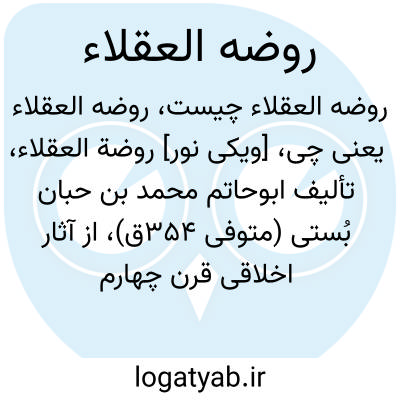 [ویکی نور] روضة العقلاء، تألیف ابوحاتم محمد بن حبان بُستی (متوفی 354ق)، از آثار اخلاقی قرن چهارم هجری است که نویسنده با استفاده از آیات، روایات و اشعار، صفات اخلاقی خوب و بد را مورد بررسی قرار داده است. کتاب با تحقیق و تعلیقات عبدالعلیم محمد الدرویش منتشر شده است.