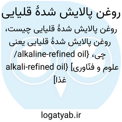 {alkaline-refined oil/ alkali-refined oil} [علوم و فنّاوری غذا] روغنی که اسیدهای چرب آزاد آن به کمک سدیم هیدروکسید جدا شده است