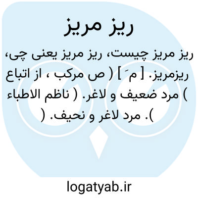 ریزمریز. [ م َ ] ( ص مرکب، از اتباع ) مرد ضعیف و لاغر. ( ناظم الاطباء ). مرد لاغر و نحیف. ( آنندراج ). || نوعی از خیار. ( ناظم الاطباء ). نوعی خیار که به عربی ضغبوس خوانند. ( آنندراج ).