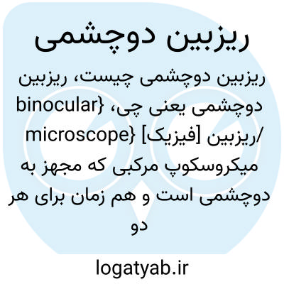 {binocular microscope} [فیزیک] ریزبین/ میکروسکوپ مرکبی که مجهز به دوچشمی است و هم زمان برای هر دو چشم ناظر تصویرسازی می کند متـ. میکروسکوپ دوچشمی