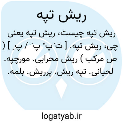 ریش تپه. [ ت َپ ْ پ َ / پ ِ ] ( ص مرکب ) ریش محرابی. مورچپه. لحیانی. تپه ریش. پرریش. بلمه. ریشو. درازریش. بزرگ ریش. آنکه ریش بزرگ و انبوه دارد نه بسیار بلند. مقابل کوسج. ( یادداشت مؤلف ). رجوع به لحیانی و مترادفات دیگر شود.