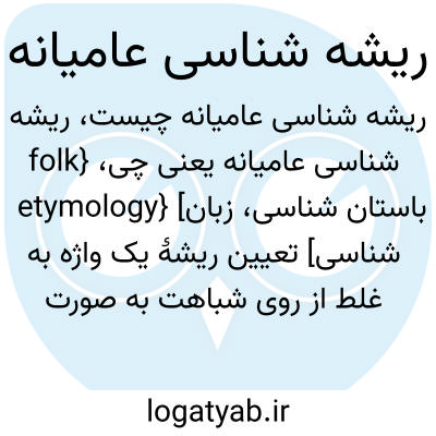 {folk etymology} [باستان شناسی، زبان شناسی] تعیین ریشۀ یک واژه به غلط از روی شباهت به صورت یا معنای واژه ای دیگر