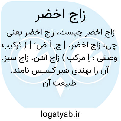 زاج اخضر. [ ج ِ اَ ض َ ] ( ترکیب وصفی، اِ مرکب ) زاج آهن. زاج سبز. آن را بهندی هیراکسیس نامند. طبیعت آن گرم و خشک تر از سایر اقسام و سوخته آن لطیفتر و احراق آن برای لطیف بودن آن است. افعال و خواص آن: محرق و اکال و... صاحب بنیه قوی مرطوب از آن [ یک درم سوخته زاج ] بنوشد موی سفید آن ریخته بجای آن موی سیاه بروید. و مجرب دانسته اند. ولیکن چون بسیار خشک و بغایت مضر ریه است ترطیب بسیار باید نمود. و قطور آن در بینی با آن جهت قطع رعاف و تنقیه دماغ از رطوبات و در گوش جهت درد گوش و چون آن را سوخته با سورنجان ممزوج کرده و در زیر زبان گذارند جهت ضفدع و آکله دهان و قلاع آن و در بینی جهت آکله و قروح آن و بدستوری طلای آن با تنهائی جهت آکله دهان و بینی و ضفدع زیر زبان و بواسیر الانف و نزف الدم جراحات مضر جراحات عصیانی و زیاده بر یک درم آن کشنده است. ( مخزن الادویه ).