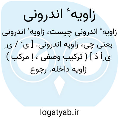 زاویه اندرونی. [ ی َ / ی ِ ی ِاَ دَ ] ( ترکیب وصفی، اِ مرکب ) زاویه داخله. رجوع به زاویه داخله شود. || زاویه داخله مقابل زاویه خارجه از خطهای متوازی. رجوع به التفهیم بیرونی ص 14 و زاویه خارج... از خطهای متوازی شود.