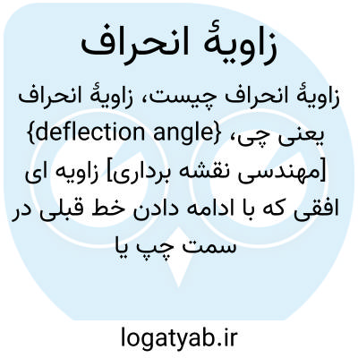 {deflection angle} [مهندسی نقشه برداری] زاویه ای افقی که با ادامه دادن خط قبلی در سمت چپ یا راست خط بعدی اندازه گیری می شود