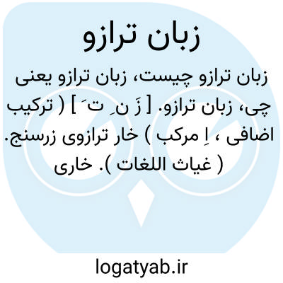 زبان ترازو. [ زَ ن ِ ت َ ] ( ترکیب اضافی، اِ مرکب ) خار ترازوی زرسنج. ( غیاث اللغات ). خاری که در میان دسته ٔترازوی زر بشکل زبان باشد و چون آن خار برابر باشد و چپ و راست سرنکشد وزن راست باشد. ( آنندراج ). لسان المیزان. ( المنجد ). نقیب. ( منتهی الارب ):