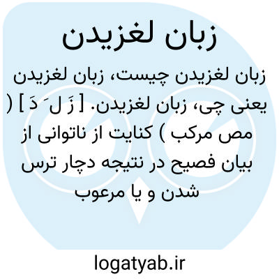 زبان لغزیدن. [ زَ ل َ دَ ] ( مص مرکب ) کنایت از ناتوانی از بیان فصیح در نتیجه دچار ترس شدن و یا مرعوب مقام یا زیبایی و یا نظایر آن شدن: