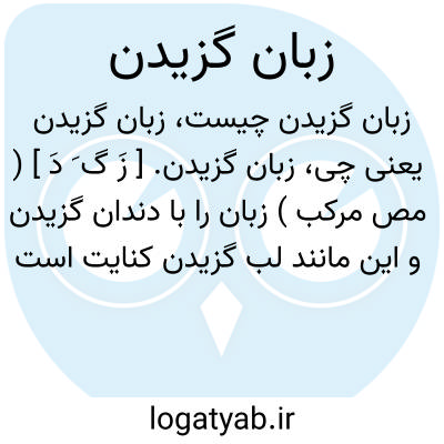 زبان گزیدن. [ زَ گ َ دَ ] ( مص مرکب ) زبان را با دندان گزیدن و این مانند لب گزیدن کنایت است از پشیمانی و تأسف برکاری و یا سخنی و معمولاً آنرا یا در مورد مذکور بکار میبرند و یا وقتی بخواهند کسی را که سخنی ناصواب و یا رفتاری برخلاف مصلحت و یا بر خلاف ادب از او سر میزند متوجه سازند.