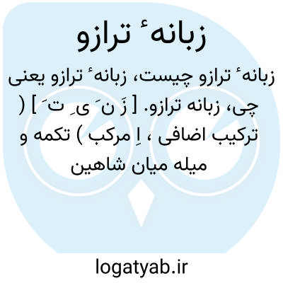زبانه ترازو. [ زَ ن َ ی ِ ت َ ] ( ترکیب اضافی، اِ مرکب ) تکمه و میله میان شاهین ترازو. رجوع به زبانه و زبانه شاهین و زبانه میزان شود.