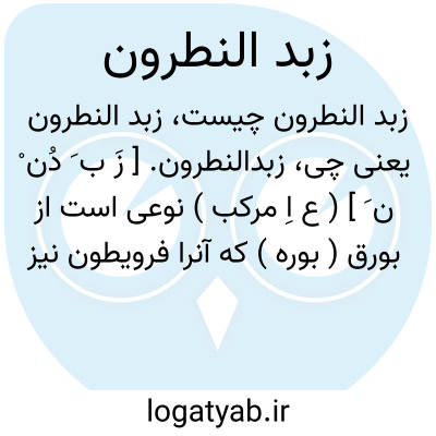 زبدالنطرون. [ زَ ب َ دُن ْ ن َ ] ( ع اِ مرکب ) نوعی است از بورق ( بوره ) که آنرا فرویطون نیز گویند. برخی از مردم گمان برده اند این نوع همان بوره ارمنی است. ( از جامع ابن بیطار: بورق ). رجوع به برهان قاطع چ معین: بورق شود.