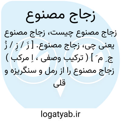 زجاج مصنوع. [ زَ / زِ / زُ ج ِ م َ ] ( ترکیب وصفی، اِ مرکب ) زجاج مصنوع را از رمل و سنگریزه و قلی میسازند و معمول اهل فرنگ بیشتر این است و شیشه های فرنگی اکثر از رمل گداخته با قلی است و این سفیدتر و شفاف تر میباشد. ( از مخزن الادویة ). مصنوع، از سنگ ریزه سفید و قلی است که بالمناصفه گدازند و آنچه با مغنسیا گداخته باشند، شفاف و صاف است و قبول رنگها میکند و شیشه بیکو و الوان مینا از آن جمله اند. ( از تحفه حکیم مؤمن ). رجوع به تذکره ضریر، مفردات ابن بیطار والجماهر بیرونی ص 185 و زجاج در این لغت نامه شود.
