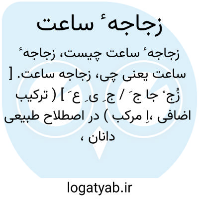 زجاجه ساعت. [ زُج ْ جا ج َ / ج ِ ی ِ ع َ ] ( ترکیب اضافی،اِ مرکب ) در اصطلاح طبیعی دانان، قطعه ای است گرد برای سنجیدن برخی از مواد شیمیایی. ( از المعجم الوسیط ).