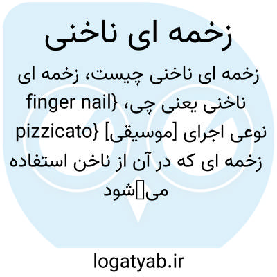 {finger nail pizzicato} [موسیقی] نوعی اجرای زخمه ای که در آن از ناخن استفاده میشود