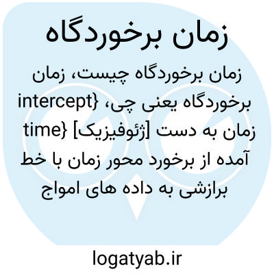 {intercept time} [ژئوفیزیک] زمان به دست آمده از برخورد محور زمان با خط برازشی به داده های امواج شکست مرزی در نمودار زمان مسافت