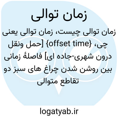 {offset time} [حمل ونقل درون شهری-جاده ای] فاصلۀ زمانی بین روشن شدن چراغ های سبز دو تقاطع متوالی