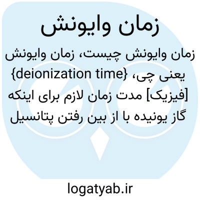 {deionization time} [فیزیک] مدت زمان لازم برای اینکه گاز یونیده با از بین رفتن پتانسیل یوننده به حالت خنثی درآید