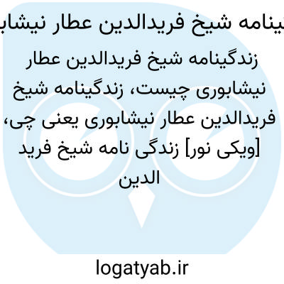 [ویکی نور] زندگی نامه شیخ فرید الدین عطار نیشابوری، به زبان فارسی، تألیف، سعید نفیسی و در شرح احوال و آثار شیخ فرید الدین عطار نیشابوری است.