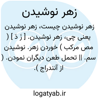 زهر نوشیدن. [ زَ دَ ] ( مص مرکب ) خوردن زهر. نوشیدن سم. || تحمل طعن دیگران نمودن. ( از آنندراج ).