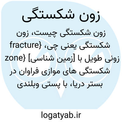 {fracture zone} [زمین شناسی] زونی طویل با شکستگی های موازی فراوان در بستر دریا، با پستی وبلندی نامنظم که صدها کیلومتر طول دارد