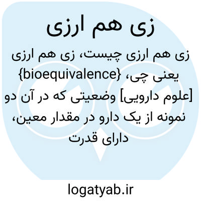 {bioequivalence} [علوم دارویی] وضعیتی که در آن دو نمونه از یک دارو در مقدار معین، دارای قدرت درمانی برابر و زیست فراهمی مشابه باشند متـ. هم ارزی زیستی