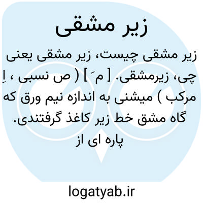 زیرمشقی. [ م َ ] ( ص نسبی، اِ مرکب ) میشنی به اندازه نیم ورق که گاه مشق خط زیر کاغذ گرفتندی. پاره ای از چرم نرم که اطفال زیر صفحه کاغذ نهادندی سهولت نوشتن را. ( از یادداشت بخط مرحوم دهخدا ).