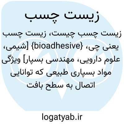 {bioadhesive} [شیمی، علوم دارویی، مهندسی بسپار] ویژگی مواد بسپاری طبیعی که توانایی اتصال به سطح بافت های زنده را دارند متـ. زی چسب